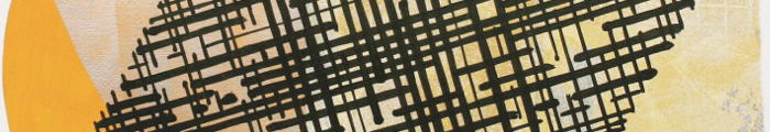 “The Integrity Series, in particular, may initially be seen as formal and contained. Orbs of muted color linger above abstract collaged shapes are overlaid with tilting or angled black grids (reminiscent of complex electronic circuitry.)