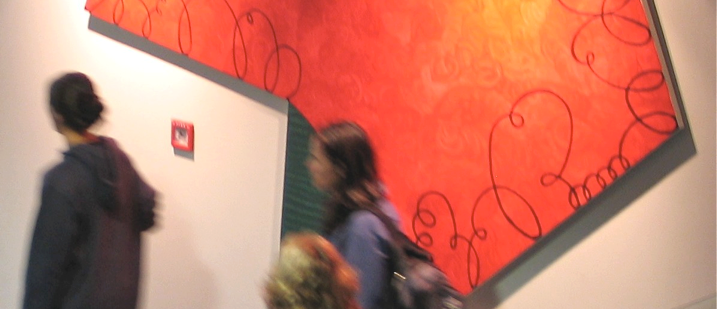 An installation of fifteen diverse large works on canvas, (dated from 1999 - 2011), throughout the Dunedin International Airport Terminal Building, to greet travelers and provide a positive ambient presence during the months of February and March 2011.